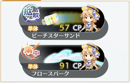 | 黄色のお星さまの砂 ×2 | 星属性/陽気/単体 光弾 命中率80% CRI率10% 斬裂弾:60% 威力:3.99 | 2 |