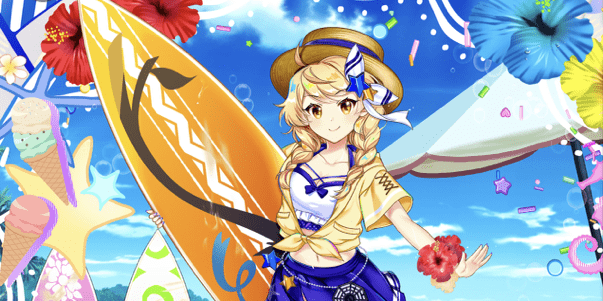| 激流ウォーターライド ×4 | 星属性/陽気/単体 肉弾 命中率80% CRI率10% 斬裂弾:50% 月関係者&地獄&水棲&水着&夏特攻 威力:5.89 | |
