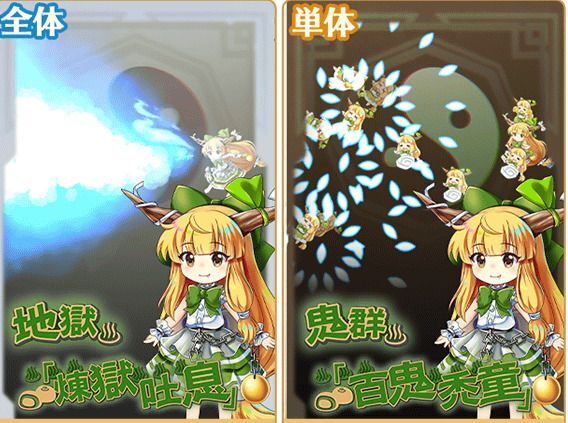 | 百鬼丁稚 ×4 | 土属性/陰気/単体 通常弾 命中率71% CRI率15% 自身にCRI命中を1段階上げる(3T,80%) 妖怪&八百万神&鬼&騒霊&旧都&河童特攻 威力:6.88 | 2 |