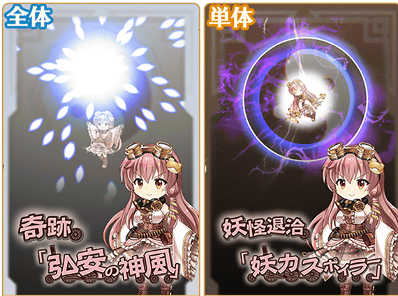 | 弘安の暴風 ×3 | 金属性/陽気/全体 光弾 命中率80% CRI率10% 爆破弾 妖獣&宗教家&妖精&精霊&虫&花特攻 威力:7.85 | |