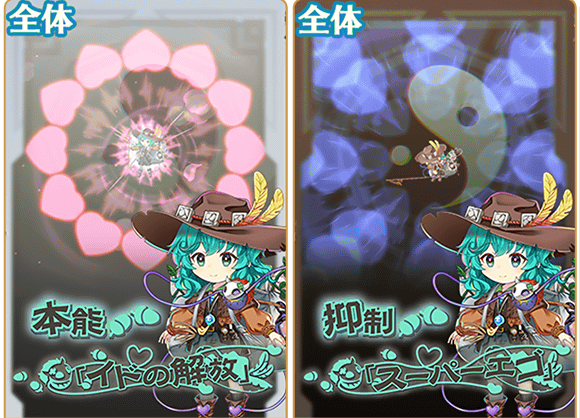 スペルカード、本能「イドの解放」は使用時に命中、陰攻、CRI攻撃のバフが出来るので、陰気関連の攻撃バフを概ね抑えることが出来る優秀な効果です。