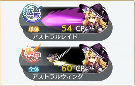 | 単体攻撃 【攻撃】星属性必中斬裂陰防低下各種特攻弾 【弾幕構成】陰気寄り 【ブースト追加】精密弾/星属性速力上昇各種特攻弾/星属性斬裂弾/CRI回避低下各種特攻弾/星属性斬裂弾 | |