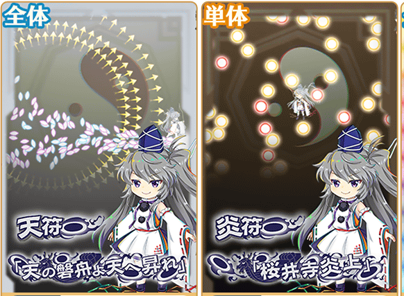 なおベストを選びたいなら、天符「天の磐舟よ天へ昇れ」は祭月夜 SIDE輝夜、炎符「桜井寺炎上」は白銀の風が候補になります。