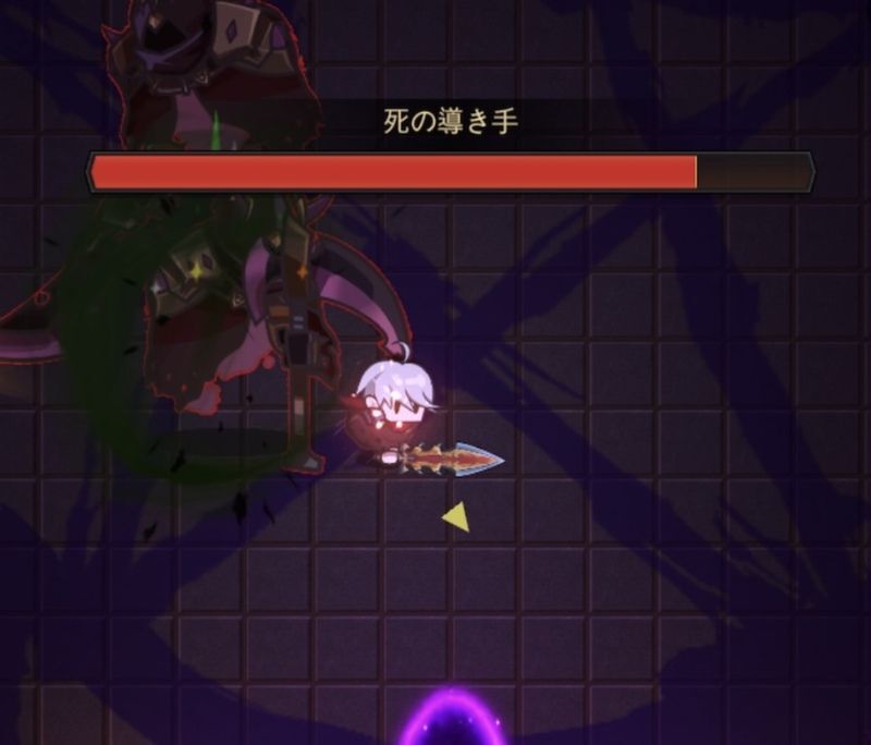 大きく離れると移動して近寄ってくるが、一定時間ごとに剣士の背後にワープして横軸方向に突進しながら斬撃を放ってくる。