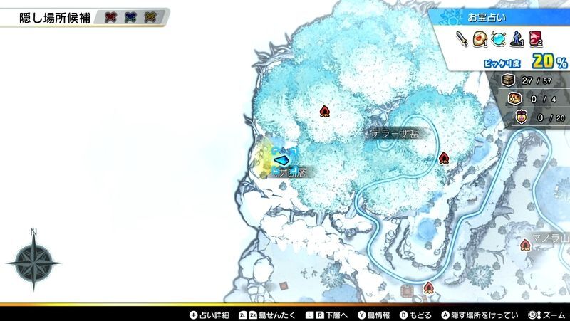 テーリア氷雪島の全体マップ