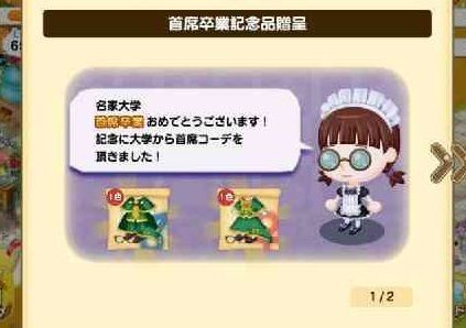 その大学で初回首席なら、タップするとメイドさんが出てきて首席コーデについての説明を受け、首席コーデをゲットできます。