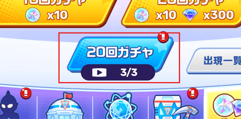 | 3.ガチャを回せるだけ回す。動画を見るとでもガチャを回せるので忘れないように! |