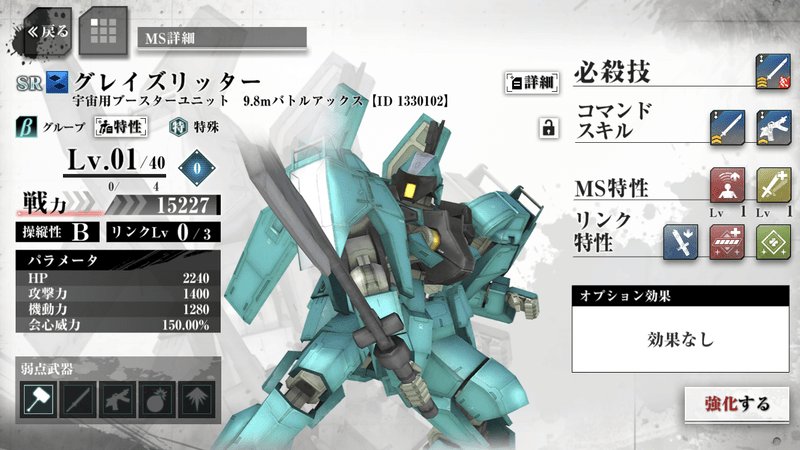 | 機動力 | 1280 | 会心威力 | 150.00% |