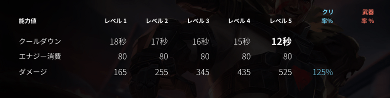 | 範囲 | 3.4 | 移動速度 | 3.4 | ||||