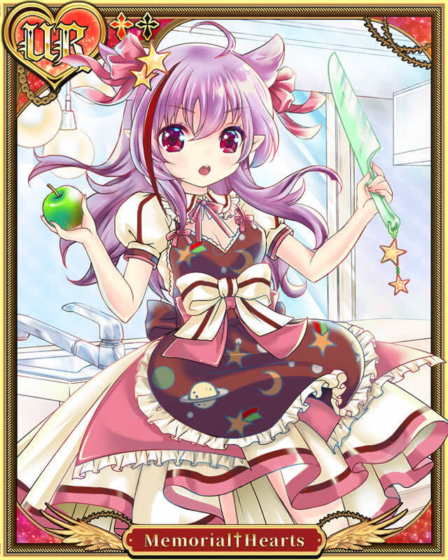 ![]() | 図鑑 | うぅ…包丁は難しいです…。スペースソードでならきっと…わ、わかってます!まな板ごと斬ったりなんてしませんよ!…多分。 | |||||