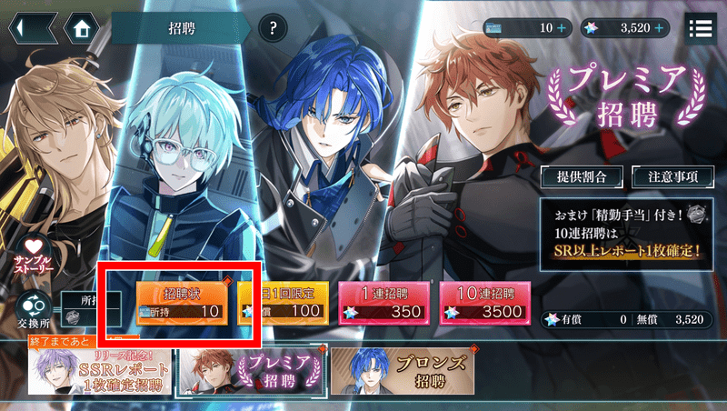 「ブロンズ招聘」では20連回すことができますがこちらはSSRが排出されないので気をつけましょう。