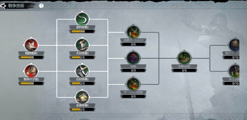 混沌の王国イベント期間中のみ有効な「戦闘トーテム」を領地に建設すると、戦争ポイントを使って様々なバフを研究し獲得することができます。