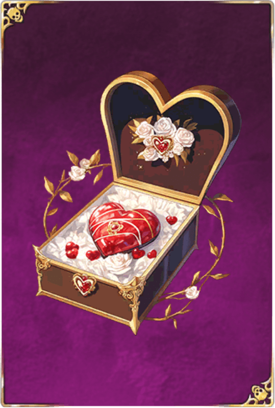 ![]() | ロノウェとダンタリオンがあなたのために用意したバレンタイン記念のチョコレート。中に何が入っているかは、このふたりの悪魔もわからない。「だから一緒に食べてみよう」という提案に頷くかどうかはあなたの選択次第だ。 |