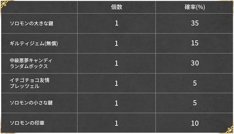 ※アップデート後の修正により入手確率が変動している可能性があります。