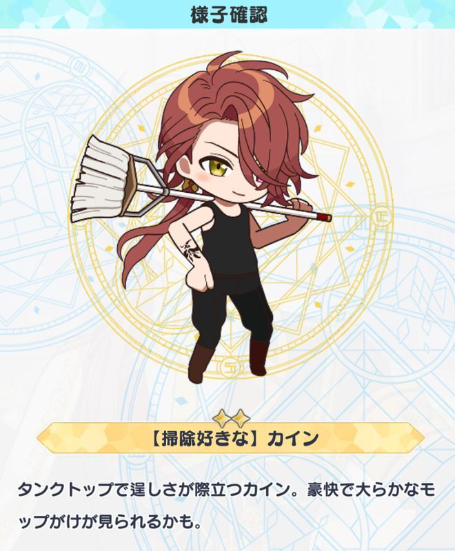 | 紹介文 | 気合いを入れて掃除すると、気分まですっきりするよな。さて、散らかってるとこはどこだ?さっさと片付けちまおうぜ。 | ||