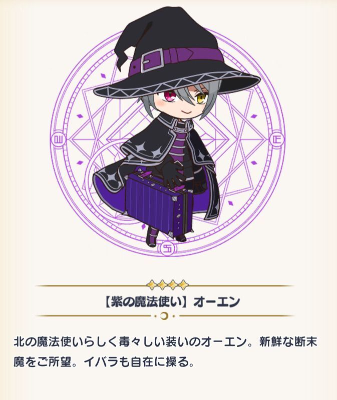 鍛錬場 合計パラメータの1.4%を参照して同じポジションに編成されている魔法使い全員の総合パワーをUPする。このスキルは国が北の国の場合にのみ、51%の確率で発動する。