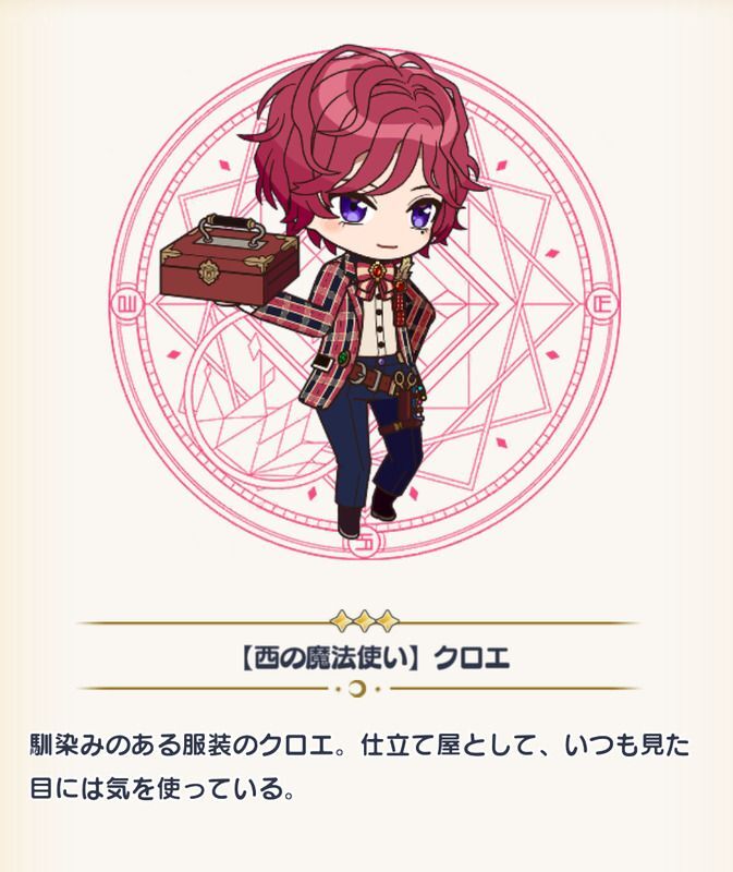 | 紹介文 | 個性的な服もいいけど、いつもの服にこそ遊び心を入れなくちゃ! ……えへへ、ありがとう。賢者様のその服も、すごくお洒落だね! | ||