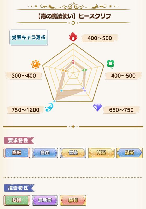 | 要求特性 | 繊細/自由/信念/神聖/誠実 |