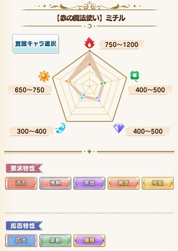 | 要求特性 | 活力/情熱/奔放/勇気/神聖 |