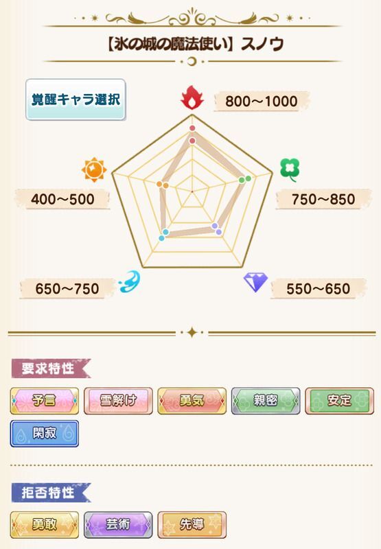 | 要求特性 | 予言/雪解け/勇気/親密/安定/閑寂 |