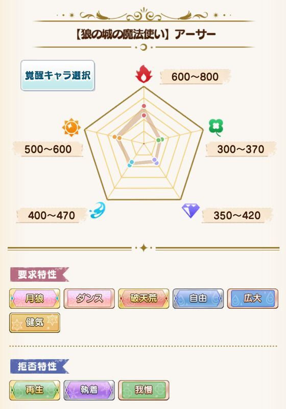 | 要求特性 | 月狼/ダンス/破天荒/自由/広大/健気 |