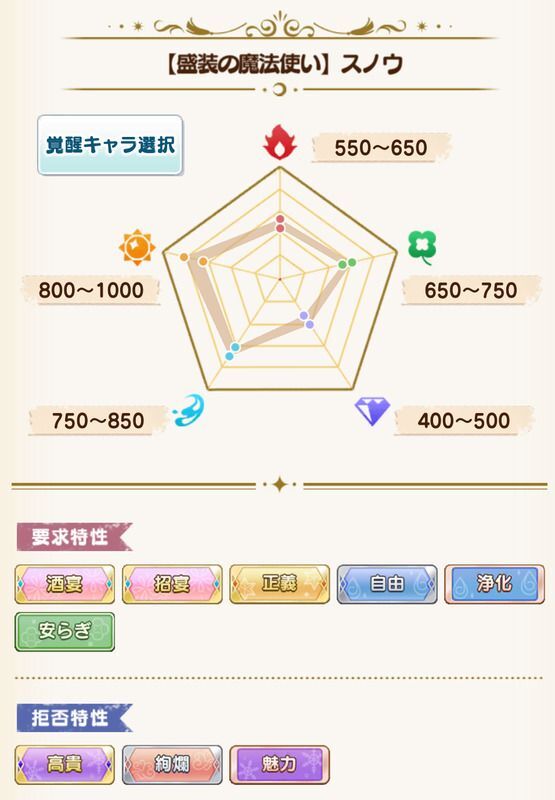 | 拒否特性 | 高貴/絢爛/魅力 |