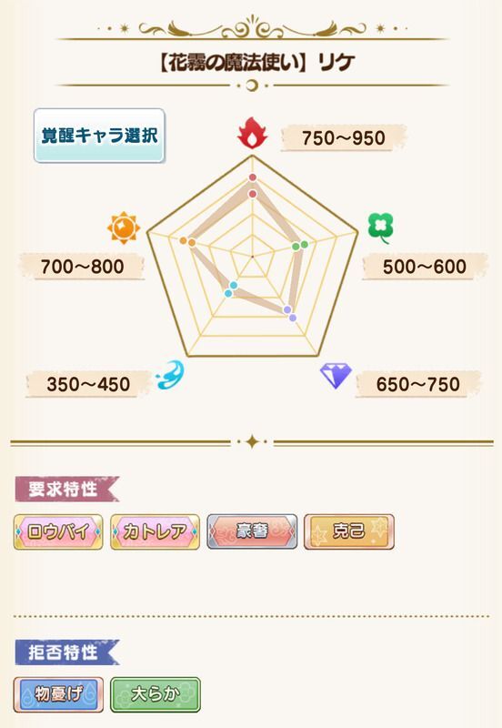 | 要求特性 | ロウバイ/カトレア/豪奢/克己 |