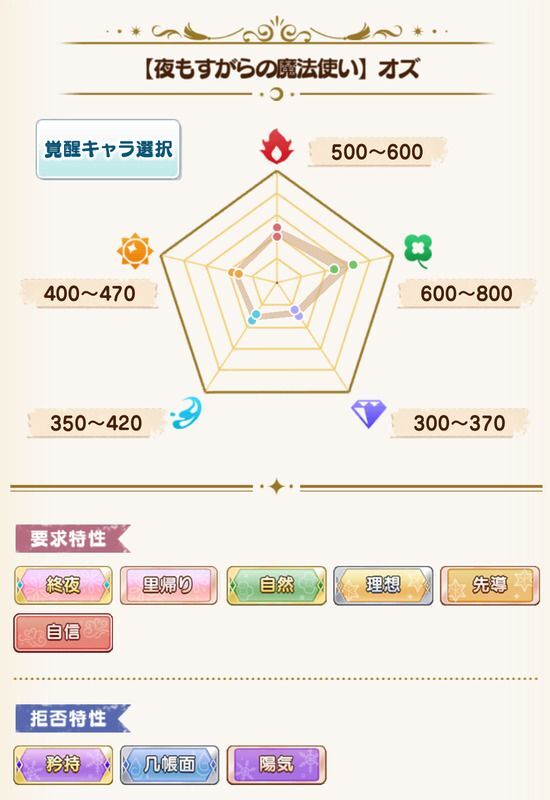 | 要求特性 | 終夜/里帰り/自然/理想/先導/自信 |