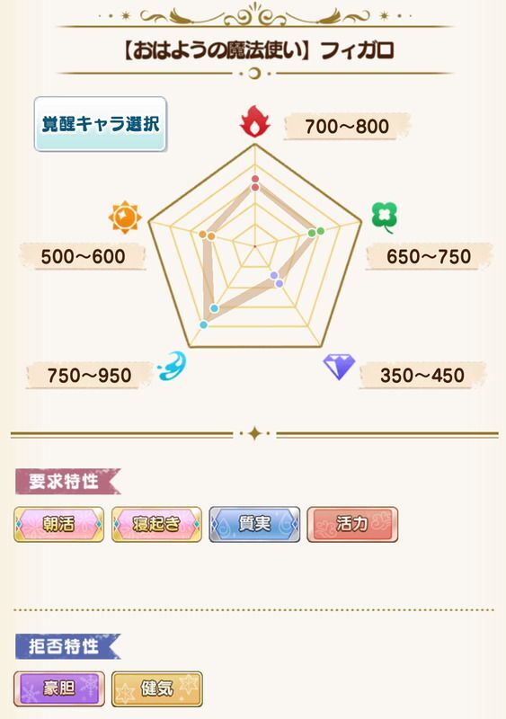 | 成長で獲得する特性 | 朝活/感傷/多才/爽やか |