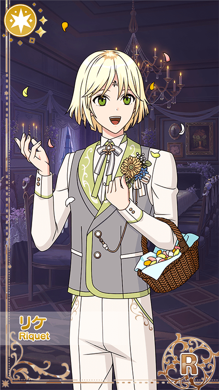| SR 【お見舞いの果実を】カイン | SR 【優しい光を集めて】ファウスト | R 【今日という日に彩りを】リケ |