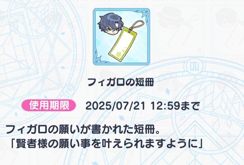 短冊アイテムをタップすると、アイテム説明欄から魔法使いたちの願い事が確認できますよ♪