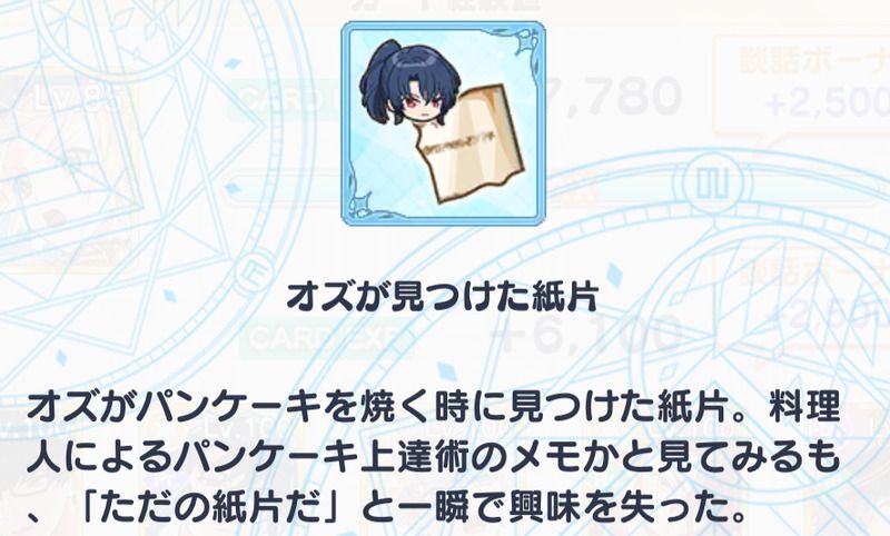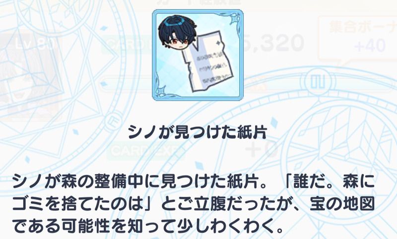 期間限定アイテム「魔法使いが見つけた紙片」を集めて、全5種類の「手がかり」を合成!