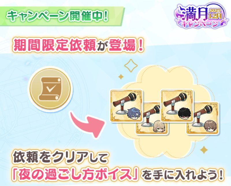 ぜひ依頼を達成して育成に役立つアイテムや、南の魔法使いたちの「夜の過ごし方ボイス」を手に入れてくださいね!