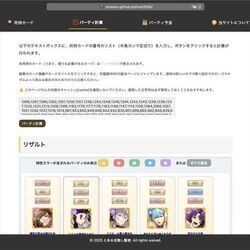 ▶一部、カード番号にずれがあるようです。 例えば、【夜語りは焚き火の前で】ネロ は画面上521と表示されていますが、所持カード一覧で選択すると540がセットされます。 そのまま文字列をパーティ計算に投入すると、521は「未所持」の扱いとなりピンク枠で表示されます。 使用したブラウザはChrome(PC)です。