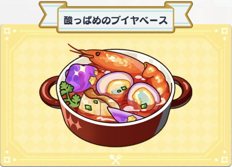 | サブ材料 | ・青のガロン瓜 ・完熟グランデトマト ・月光樹の実 ・エバーチーズ ・ビネガーフィッシュ ・熟した群青レモン ・ぬめりタコ ・虹色キノコ |