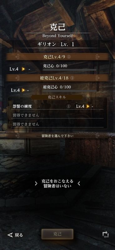 ギリオンのスキル継承と克己の優先度