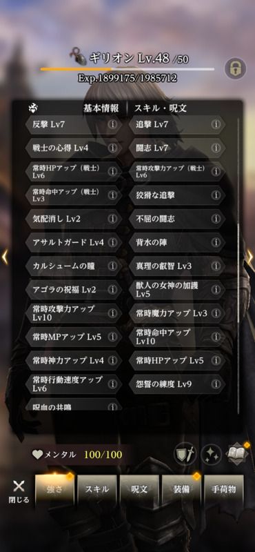 戦士なので呪文を活かす場面はほぼありませんが、例えば、攻撃力依存かつ物理攻撃以外のアクティブスキルなどを継承した場合にも、他のキャラよりも高い威力が出せます。