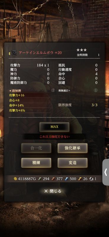 最新の装備に比べるとスペックでは劣るのですが、強力な加護が乗ればランク5の装備にも勝る点と、抽出で優秀な変造石、精錬石が狙えるのがポイントです。
