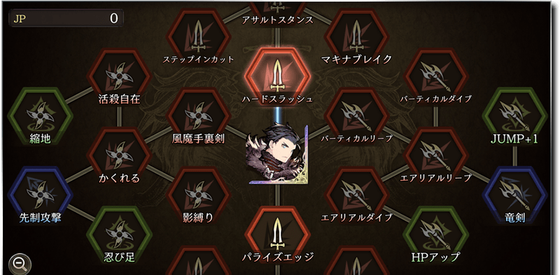 上記の画像のようなアビリティボードからJPと呼ばれるポイントを消費することで、ステータスやスキルなどを強化することができます。
