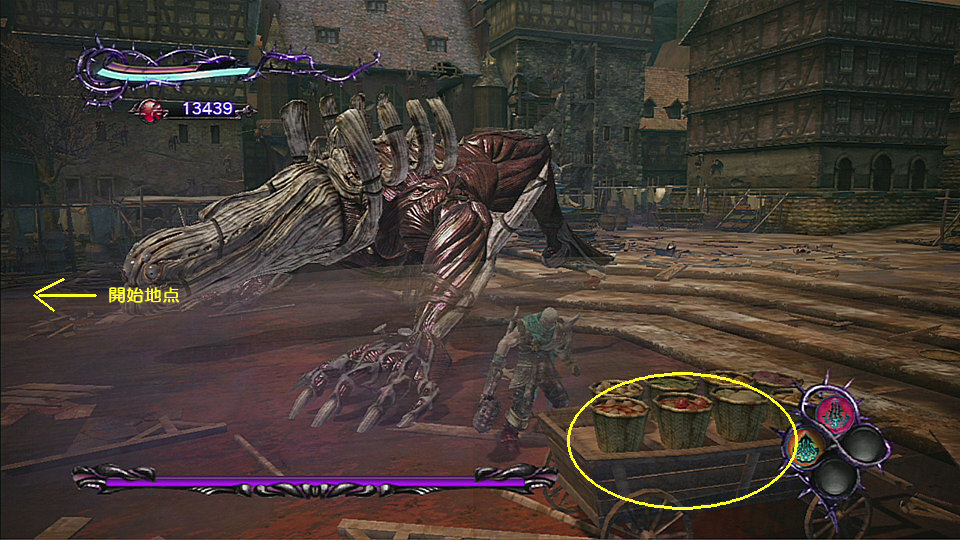 - 戦闘が開始したら右へ進むと果物などが乗る台車を壊すと失われたページ(2/3)