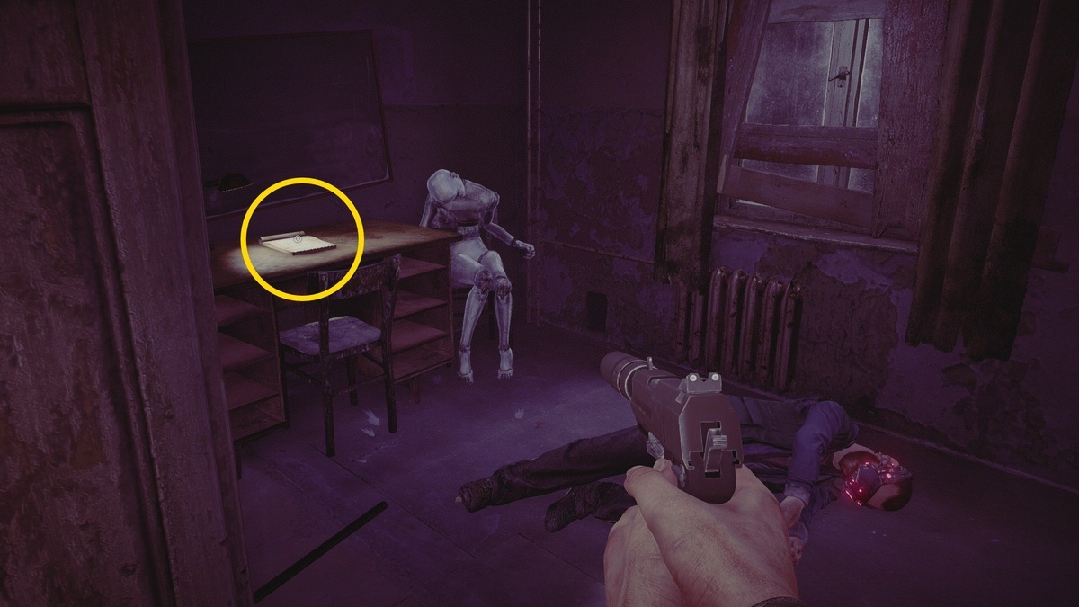 - なお、レベル 7: Building C( Part 1 )でボイスにバールを渡していないとダクトカバーが外れていない。その場合、部屋に入ってすぐの机上に日記が置いてある(下の画像)