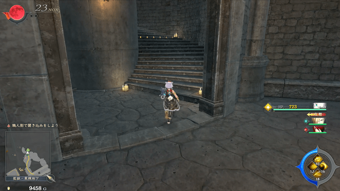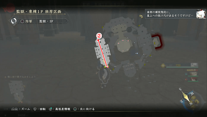 | 階段を降りると広間になっており、奥に「監獄の見取り図」があるので回収する。 | |