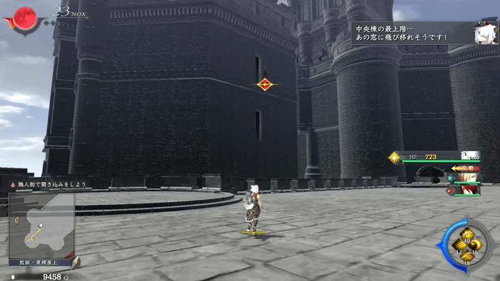 | 頂上まで登ると外に出られる。画像の場所からアドルの異能「クリムゾンライン」を使って中に入る。奥に進むとイベントが始まる。 |