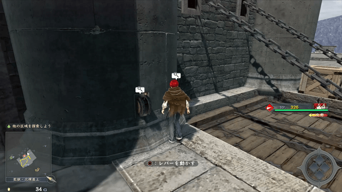| 監獄内から外に出て左右にレバーがあるが、右側のレバーを動かす。(左側のレバーは動かせないようになっている。) | |