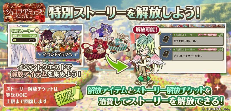 イベント『ショコラ・アミューズ』では専用アイテムを使うことで、全マイスター・黒妖精が登場する全20話の特別ストーリーが読めます。