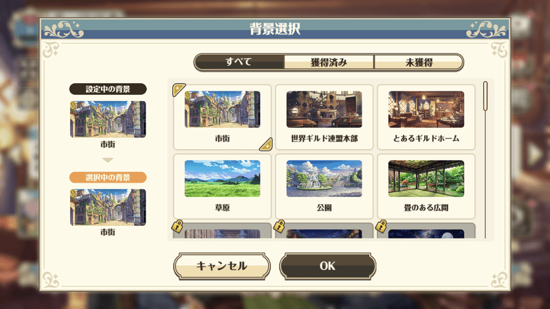 背景はメインストーリーのクリアやおでかけの回数によって獲得することができます。