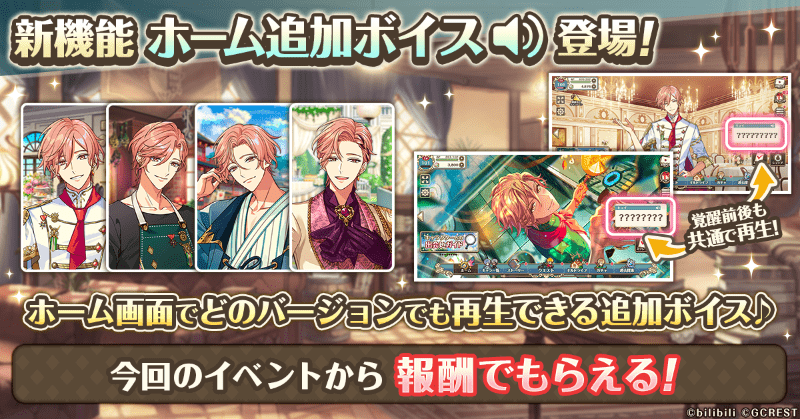 ※ホーム追加ボイスは、復刻イベントやガチャでの再登場時には新規追加されません。