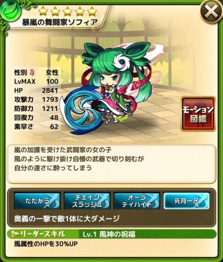 | リーダースキル | 風神の祝福 |