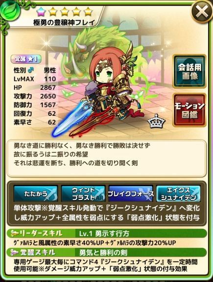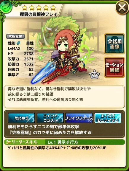 | ヴァルハラと風属性の素早さ40%+ヴァルハラの攻撃力20%UP | |