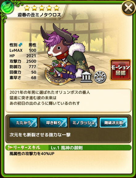 | ユニット名 | 迎春の丑ミノタウロス |